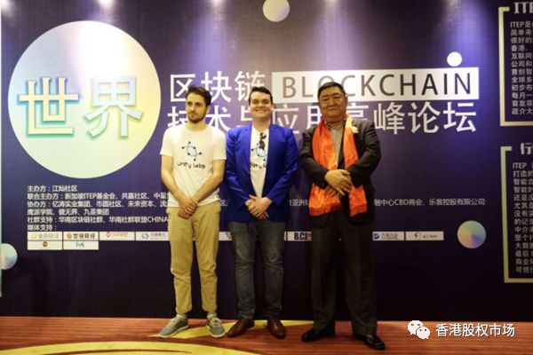 Unity Labs CEO Michael 及 CTO Warren 参加世界区块链技术与应用高峰论坛(2018.06.17)的合影,有意思的是通过搜索参会人员如“共享医美科技创始人总裁屈前宇先生”,“ITEP 亚太服务中心总裁屈前宇先生”,便可知道这种活动的性质如何了,两位老外在此的角色。