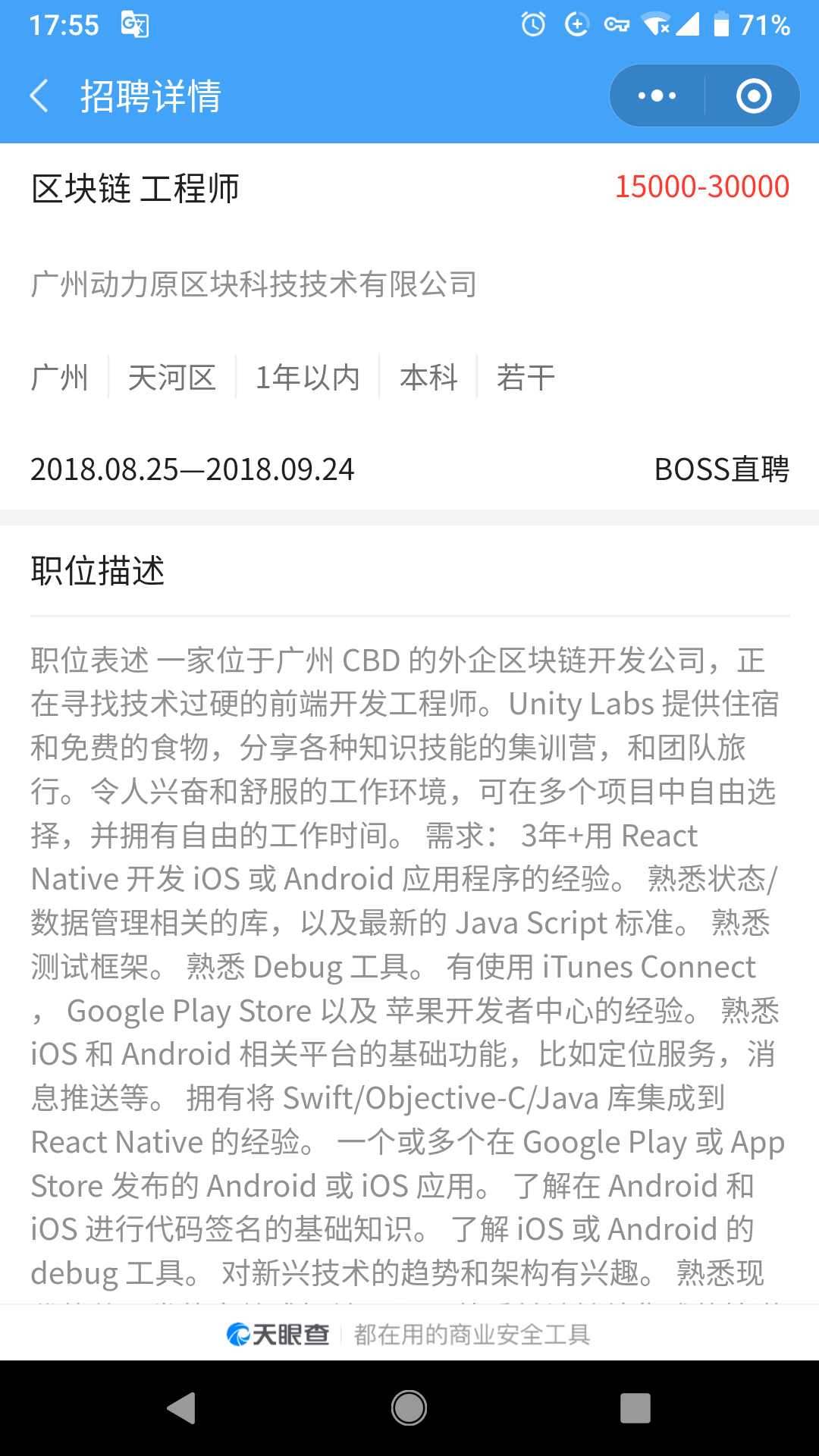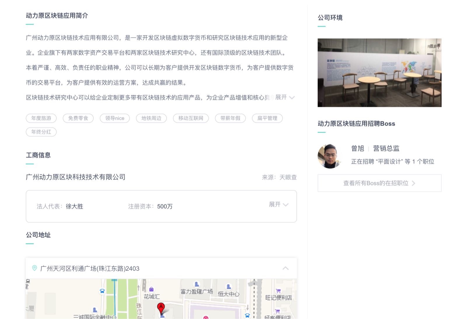 广州动力原区块科技技术有限公司和 Unity Labs 之间的关系,天眼查中留存的通过动力原区块链进行招聘的记录