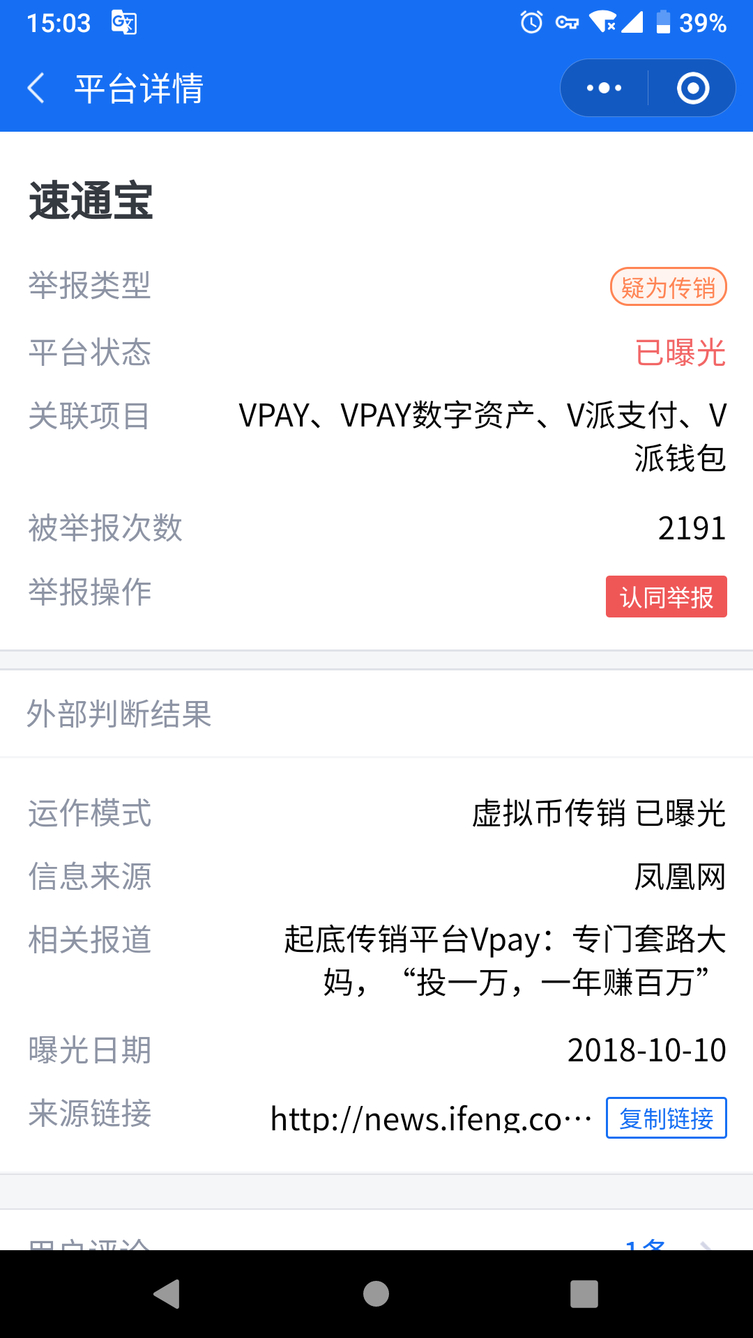 vpay(别名速通宝)在腾讯小程序灵鲲金融安全中的查询结果